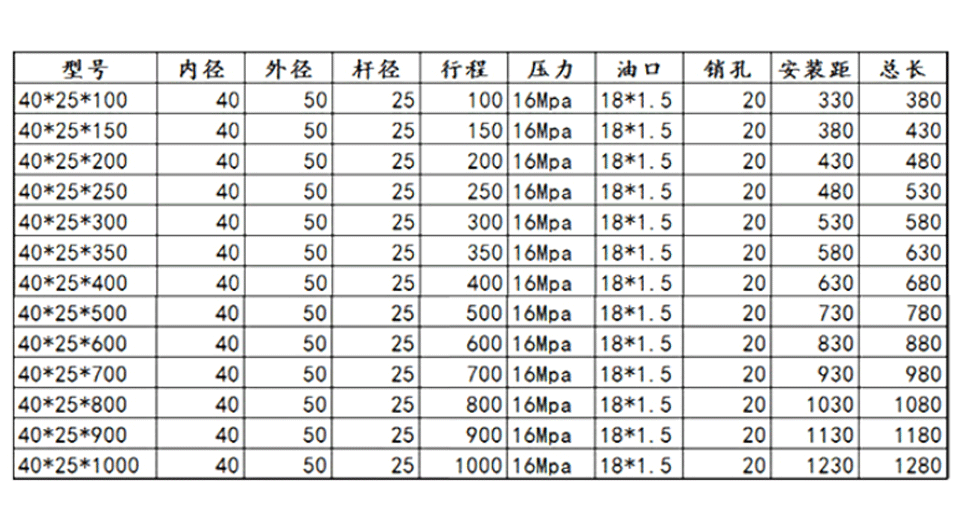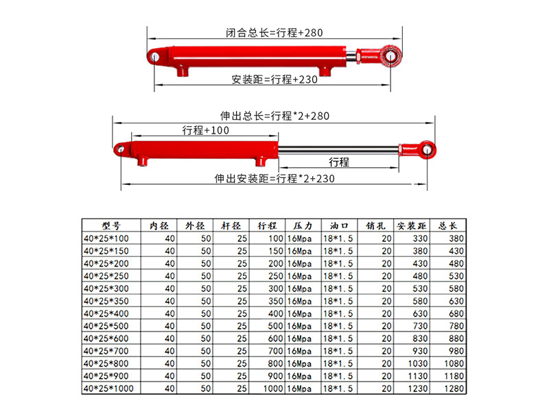 单位:MM 推力:20096N(2吨) 拉力:12300(1.2吨) 油口螺纹:18*1.5 额定耐压:16MPA 定制:支持定做;
